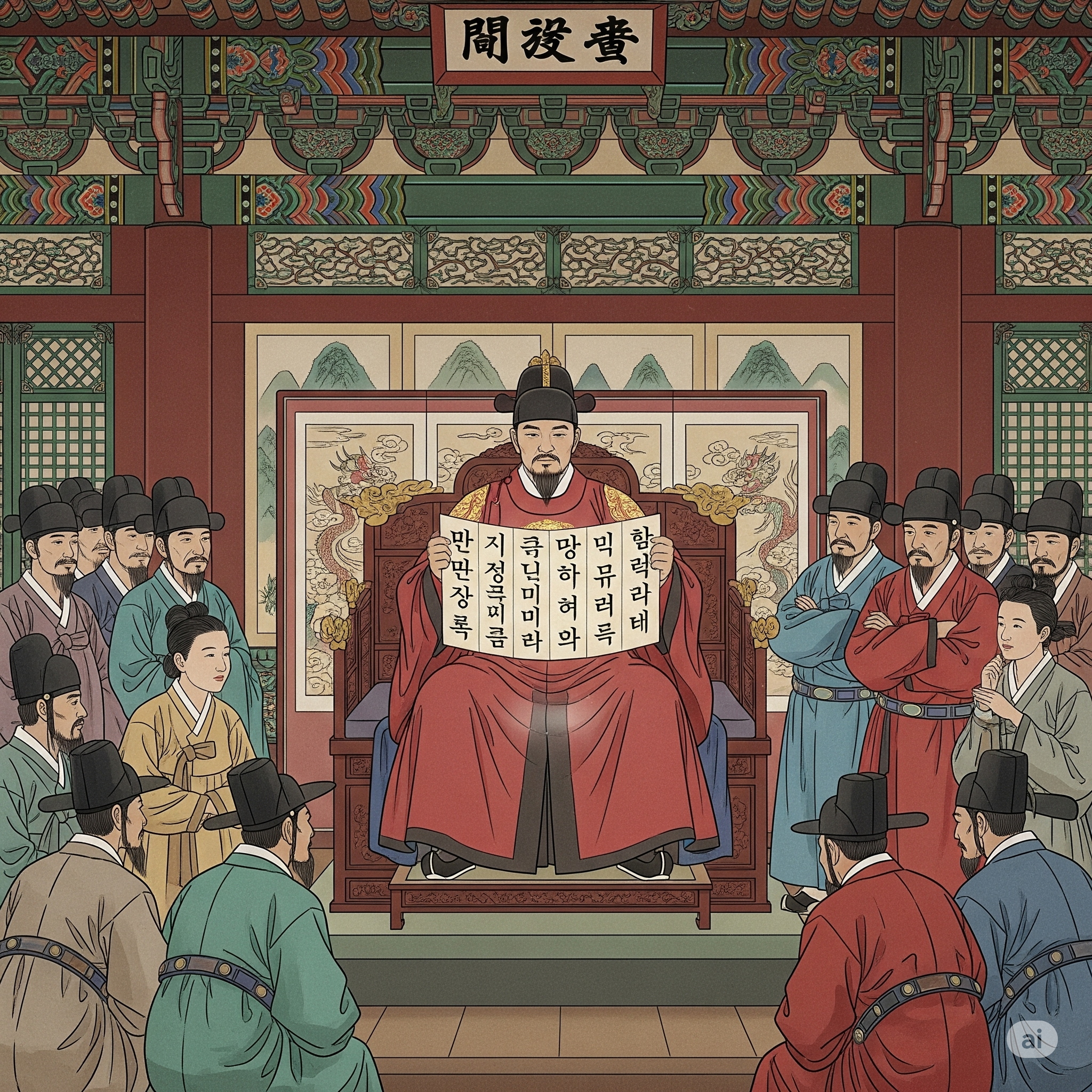 • 세종대왕은 훈민정음 창제를 비밀리에 추진했습니다. 백성을 위한다는 명분에도 불구하고, 기득권층의 반발이 심할 것을 예상했기 때문입니다.